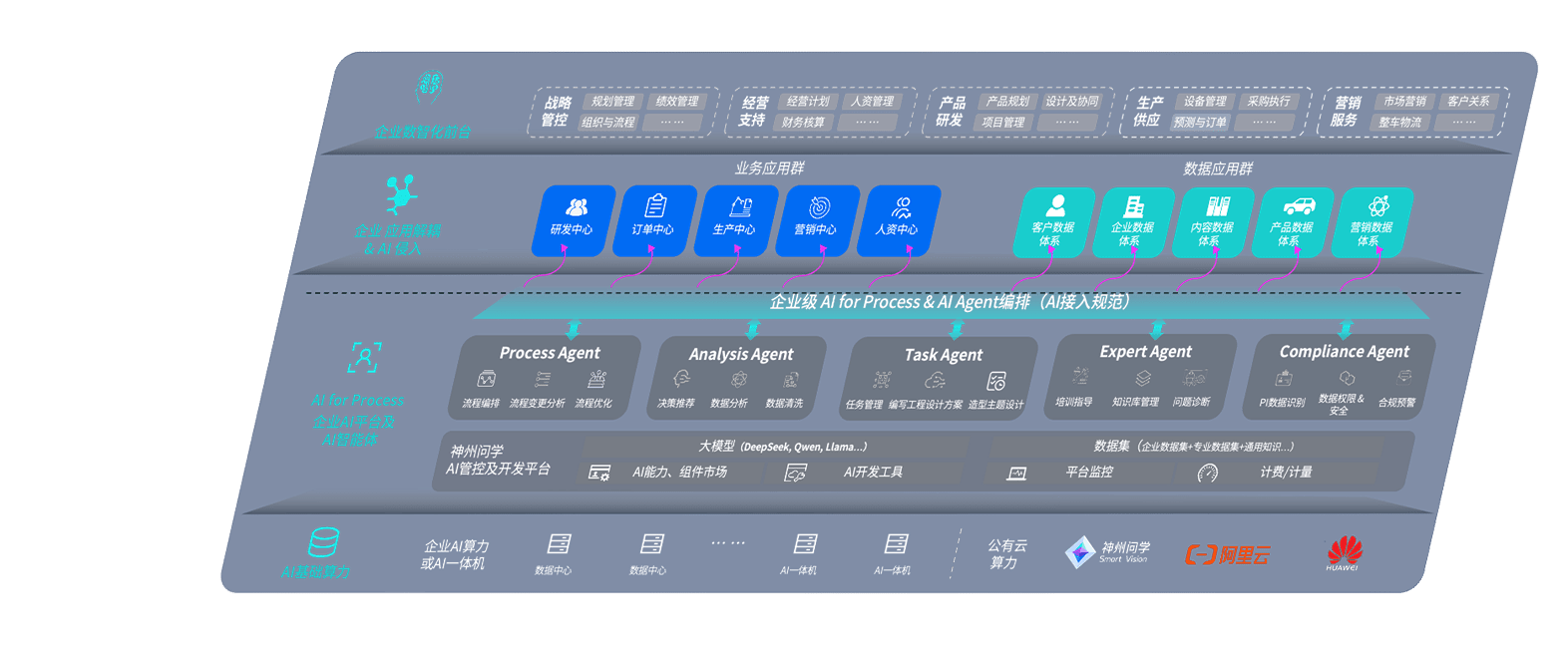 意昂2问学智车解决方案是一套基于AI技术的汽车行业智能化系统,,,,覆盖从底层算力到顶层AI应用的全栈方案。。。。方案由算力层、、、模型层和应用层组成:算力层,,方案支持多种一体机配置,,,具备云端灵活部署、、多云适配以及动态优化计算资源的能力;模型层,,,意昂2问学平台版提供了企业级AI应用一站式构建与管理平台,,,支持基于后训练强化技术的汽车企业专属模型的训练、、评测和运营;应用层,,意昂2问学DeepSeek版提供包括超级员工、、、智能招采、、智能营销、、智能客服、、、、AI for BI等一系列解决方案,,,,可助力汽车行业实现数字化转型,,让管理更智能、、、响应更敏捷。。。