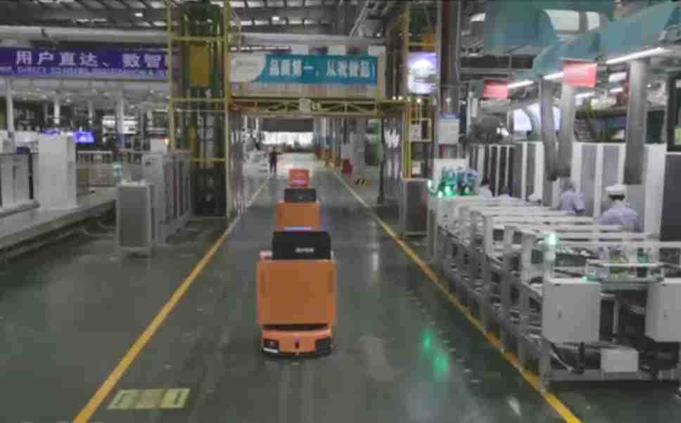 为车载冰箱物流配送打造的智能解决方案,,包含产中物流通过潜伏举升AMR搬运至线边,,产后成品物流智能仓储,,流程包含产中物流智能齐套入库,,,,线边安灯叫料AMR智能配送至线边,,,成品入库、、、出库,,,通过无人堆高车机器人,,,,智能仓储管理替代人工作业管理,,实现更高存储、、、、更高效率、、、更具柔性化的解决方案。。。。